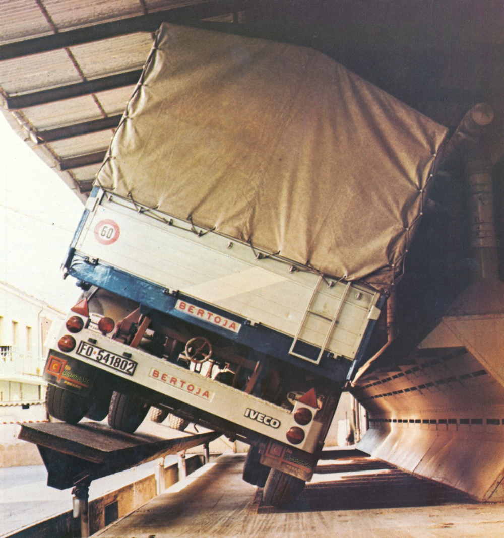 Piattaforma idraulica ribaltabile laterale lunghezze da 8 sino a 18 metri. Per mulini, mangimifici pastifici ed altro. Per utilizzo con autocarri e vagoni. Su richiesta rispondenti a normativa atex.